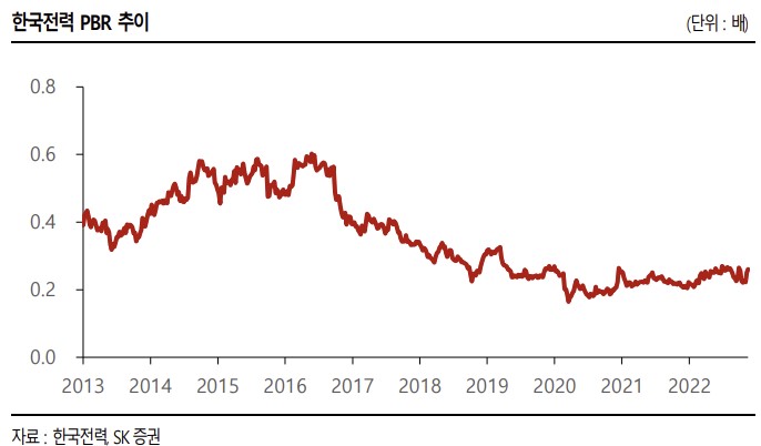 전기요금 인상에도 정상화는 어려울 것으로 봤다. 나 연구원은 "3분기를 기점으로 기준 연료비 인상, 원가 연동형 요금제 도입으로 전기요금이 인상되었지만, 주가는 하락했다"라며 "영업이익이 흑자로 전환되기 위해서는 2022년 전력 판매단가가 +61원/kWh 상승해야 했음에도 불구하고, 실제는 +14원/kWh 상승에서 멈추면서 시장 기대치를 만족시키지 못했기 때문"이라고 짚었다.