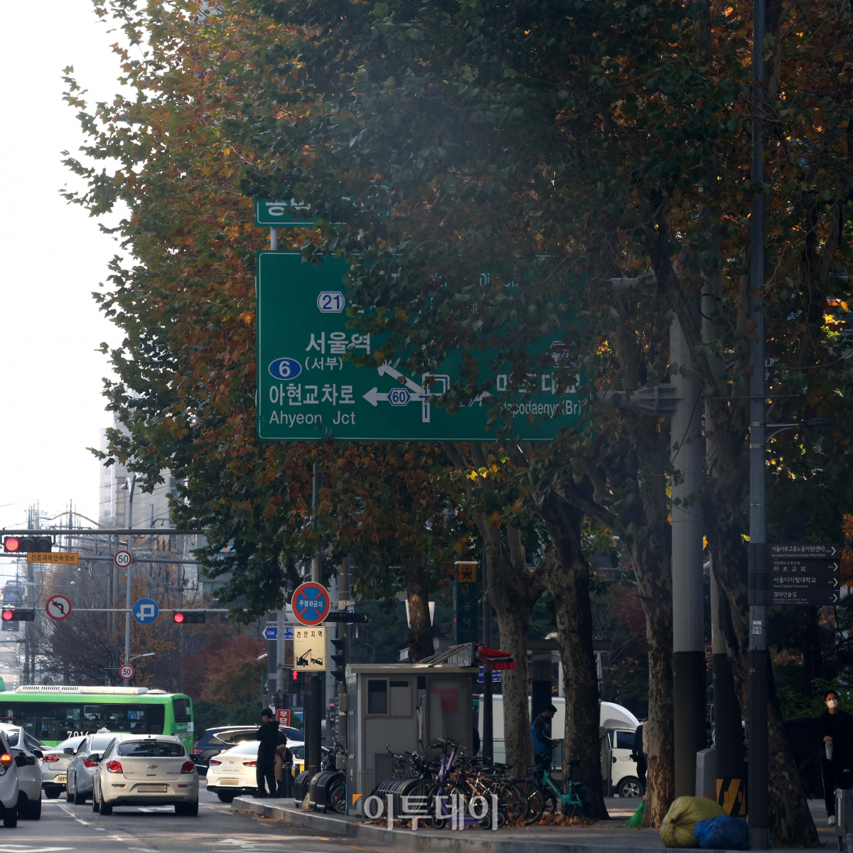 서울 공덕오거리 앞의 이정표가 가로수에 가려 제 역할을 하지 못하고 있다. 도시 미관을 아름답게 가꿔줄 뿐 아니라 도로나 인도에 맑은 공기와 시원한 그늘을 제공해주는 가로수지만 초행길이거나 초보운전자의 경우 나뭇가지에 가려 보이지 않는 이정표를 확인하거나 무리한 끼어들기를 유발해 자칫 사고가 발생할 위험이 있다. 교통안전을 위해 적절한 전지작업이 필요해 보인다.