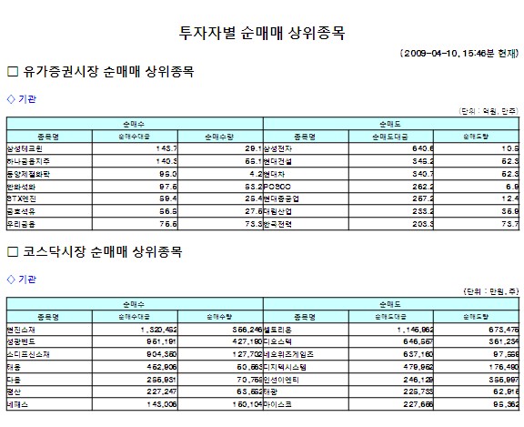 10일 오후 3시 40분 거래소의 잠정집계에 따르면 기관은 유가증권시장에서 4751억원을 순매도하며 매도 강도를 높여갔다.