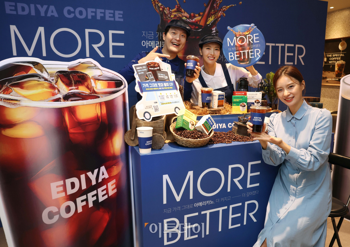 이디야커피가 22일 서울 중구 이디야커피 한 매장에서 ‘뉴(NEW)아메리카노’ 출시행사를 갖고 있다. 이디야 NEW아메리카노는 에스프레소 샷 추가로 더 깊고 진한 커피 맛을 구현하면서 기존과 동일한 가격에 더 큰 용량을 제공하는 것이 특징이다.