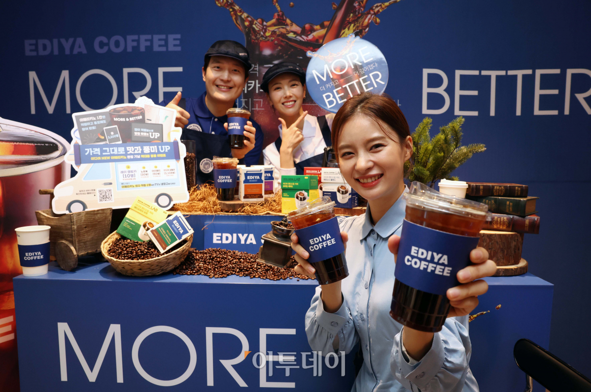 이디야커피가 22일 서울 중구 이디야커피 한 매장에서 ‘뉴(NEW)아메리카노’ 출시행사를 갖고 있다. 이디야 NEW아메리카노는 에스프레소 샷 추가로 더 깊고 진한 커피 맛을 구현하면서 기존과 동일한 가격에 더 큰 용량을 제공하는 것이 특징이다.