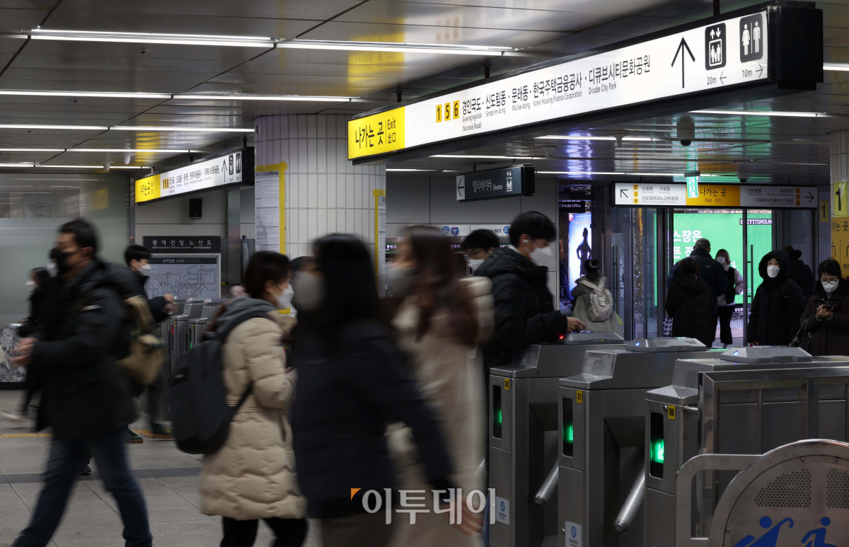 서울시가 누적되고 있는 경영적자로 8년 만에 지하철과 버스 요금 인상을 추진한다. 지하철 무임수송 손실분에 대한 국고 지원이 무산된 것이 가장 큰 원인으로 이르면 내년 4월 말부터 300원씩 오를 것으로 예상된다. 29일 서울 신도림역에서 시민들이 발걸음을 옮기고 있다.