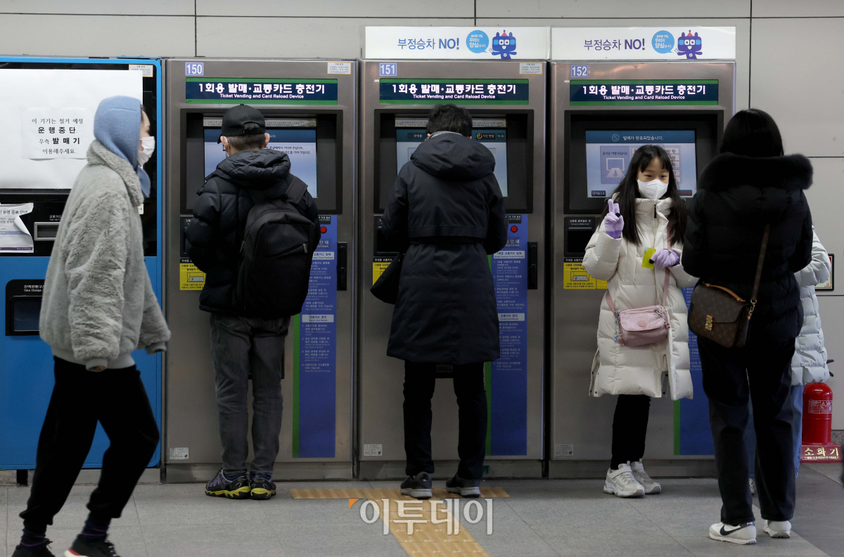 서울시가 누적되고 있는 경영적자로 8년 만에 지하철과 버스 요금 인상을 추진한다. 지하철 무임수송 손실분에 대한 국고 지원이 무산된 것이 가장 큰 원인으로 이르면 내년 4월 말부터 300원씩 오를 것으로 예상된다. 29일 서울 신도림역에서 시민들이 교통카드를 구매하고 있다.