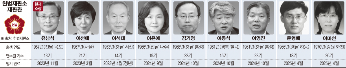 이선애 재판관과 이석태 재판관은 각각 3월과 4월 정년퇴임 예정이다. 공석이 되기 전에 서둘러 결론을 내릴 것으로 보인다.