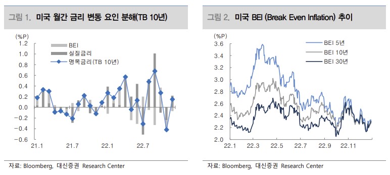 공 연구원은 "최근 연준의 거듭된 물가 안정 강조에도 불구하고 2023년 하반기 기준금리 인하 기대가 강화되고 있다는 점 역시 인플레이션 내러티브의 약화와 무관하지 않다"고 평가했다.
