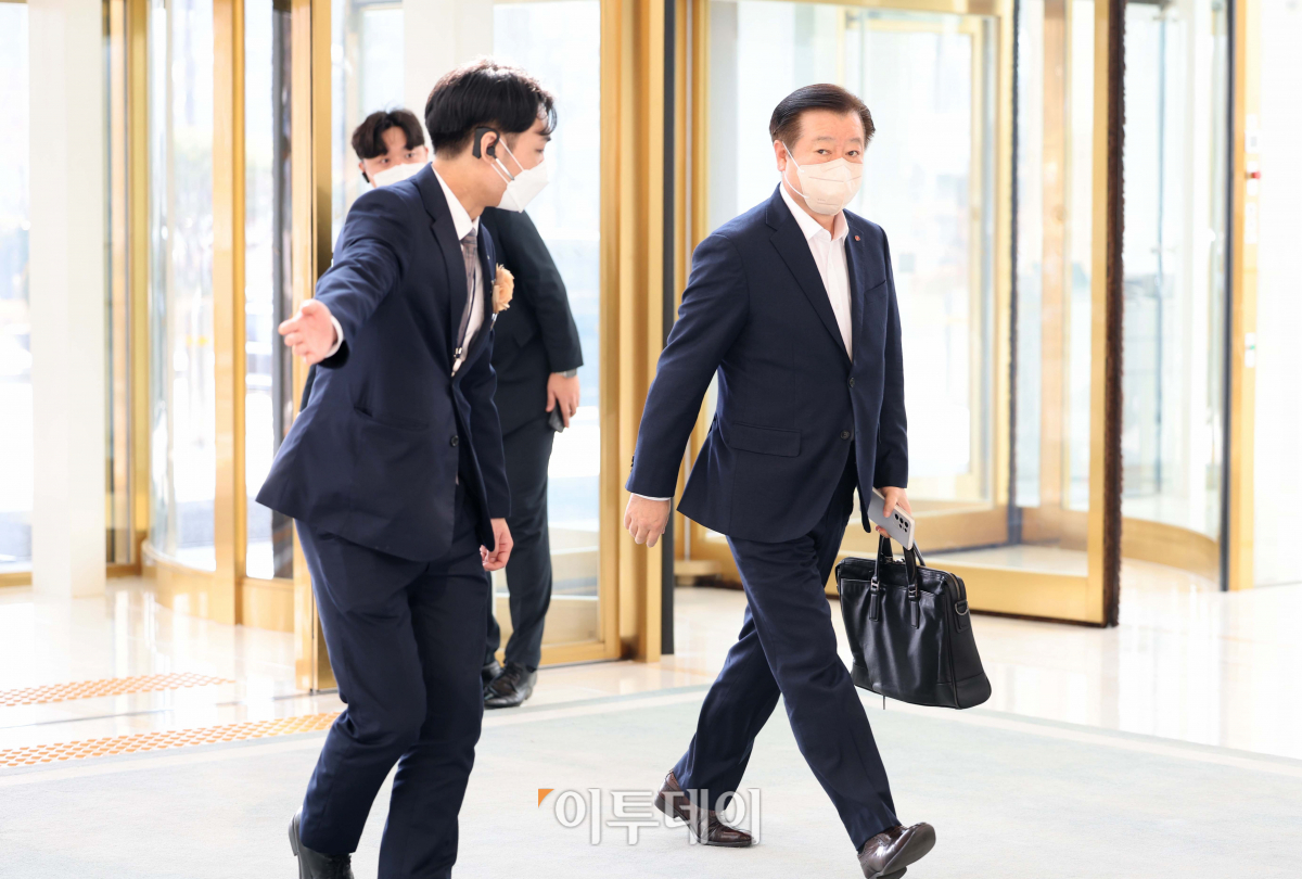 [포토] 롯데그룹 사장단 회의 참석하는 이영구 롯데제과 대표
