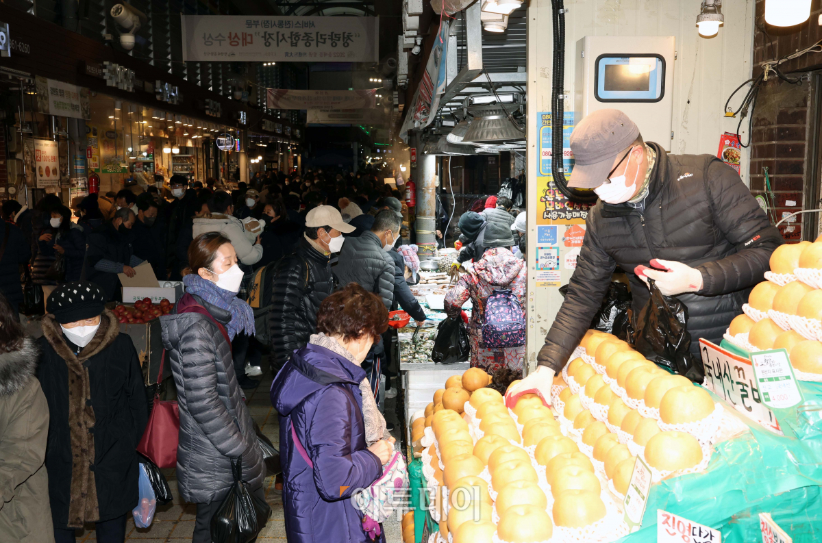 설을 일주일 앞둔 15일 서울 동대문구 청량리종합시장이 제수용품을 구매하려는 시민들로 붐비고 있다.