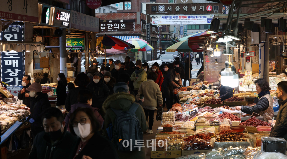 설을 일주일 앞둔 15일 서울 동대문구 경동시장이 제수용품을 구매하려는 시민들로 붐비고 있다.