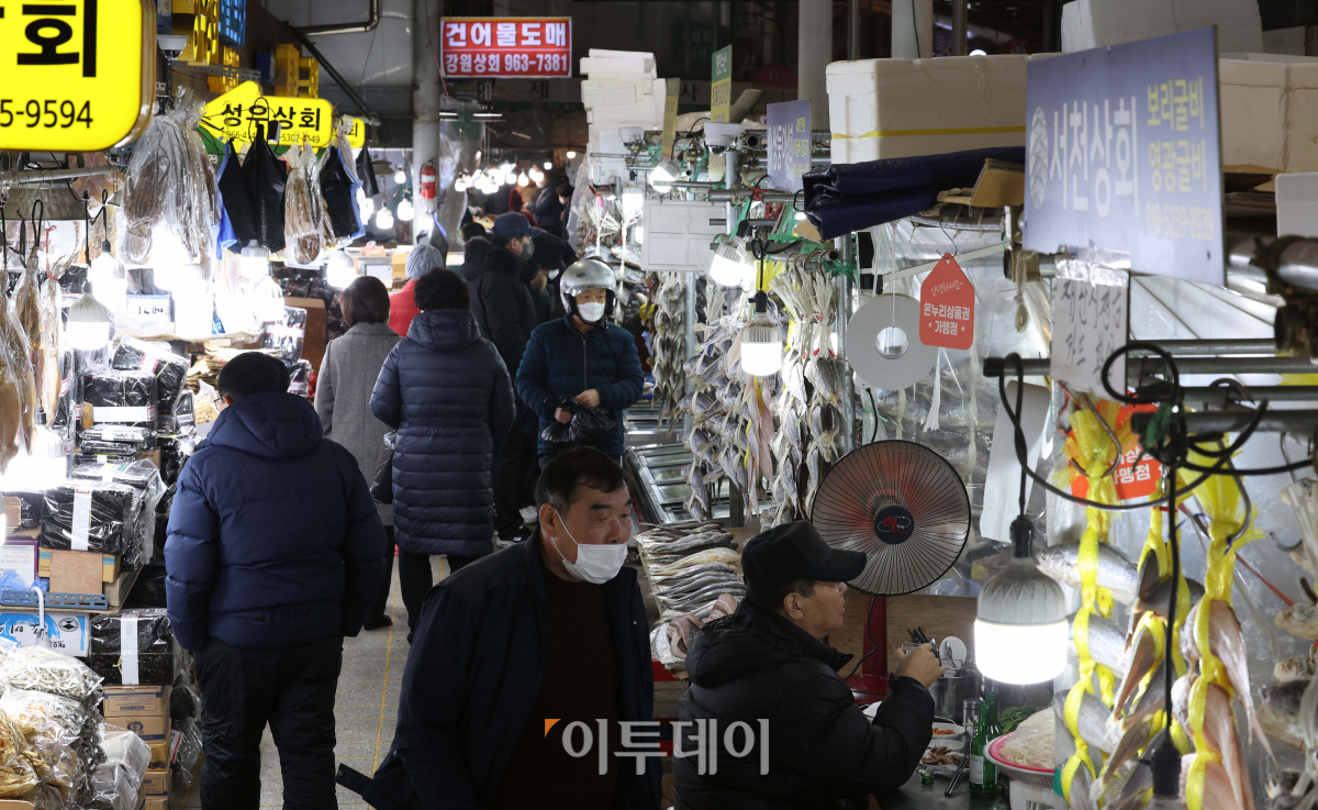 설을 일주일 앞둔 15일 서울 동대문구 경동시장이 제수용품을 구매하려는 시민들로 붐비고 있다.