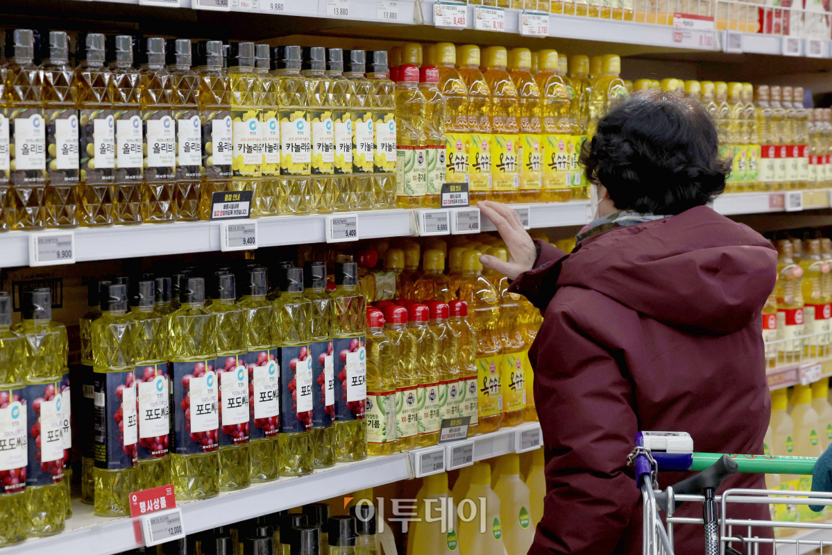 고물가에 2022년 4분기 생활필수품 가격이 재작년 같은 기간보다 평균 12.1% 상승한 것으로 나타났다. 한국소비자단체협의회 물가 감시센터는 서울과 경기도의 420개 유통업체에서 판매 중인 생활필수품 39개 가격을 조사한 결과 이같이 나타났다고 16일 밝혔다. 특히 값이 가장 많이 오른 밀가루(38.3%)와 식용유(31.5%), 마요네즈(19.5%), 참치(16.4%), 참기름(16.1%) 등 5개 품목의 평균 상승률은 24.3%에 달했다. 이날 서울의 한 대형마트에서 시민들이 장을 보고 있다.
