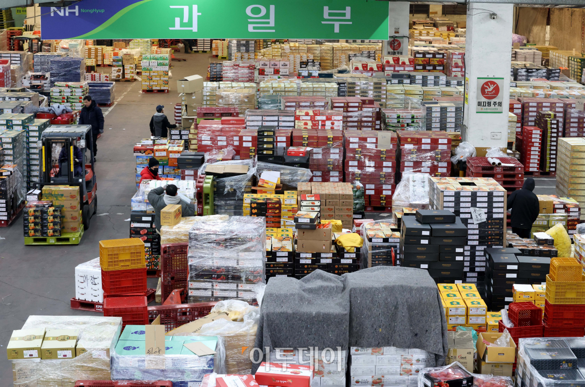17일 오전 경기 구리시 구리농수산물도매시장이 설 명절을 앞두고 분주한 모습을 보이고 있다.