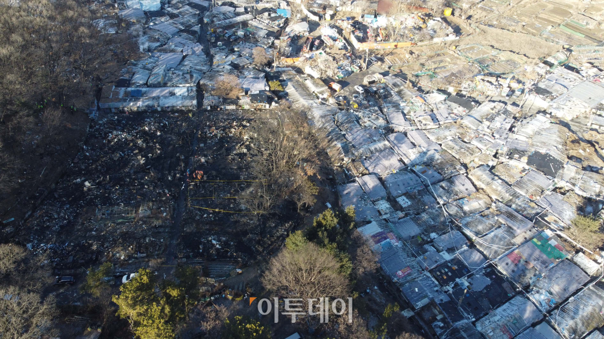 20일 오전 6시27분께 서울 강남구 개포동 구룡마을에서 일어난 큰불이 약 5시간 만인 오전 11시46분께 완전히 꺼졌다. 소방당국에 따르면 가건물 비닐 합판 소재의 주택 약 60채를 포함해 총 2700㎡가 소실됐다. 이 불로 주민 약 500명이 대피했으며 인명피해는 없는 것으로 파악됐다. 이날 화재가 난 구룡마을 4구역 일대가 잿더미로 변해 있다.