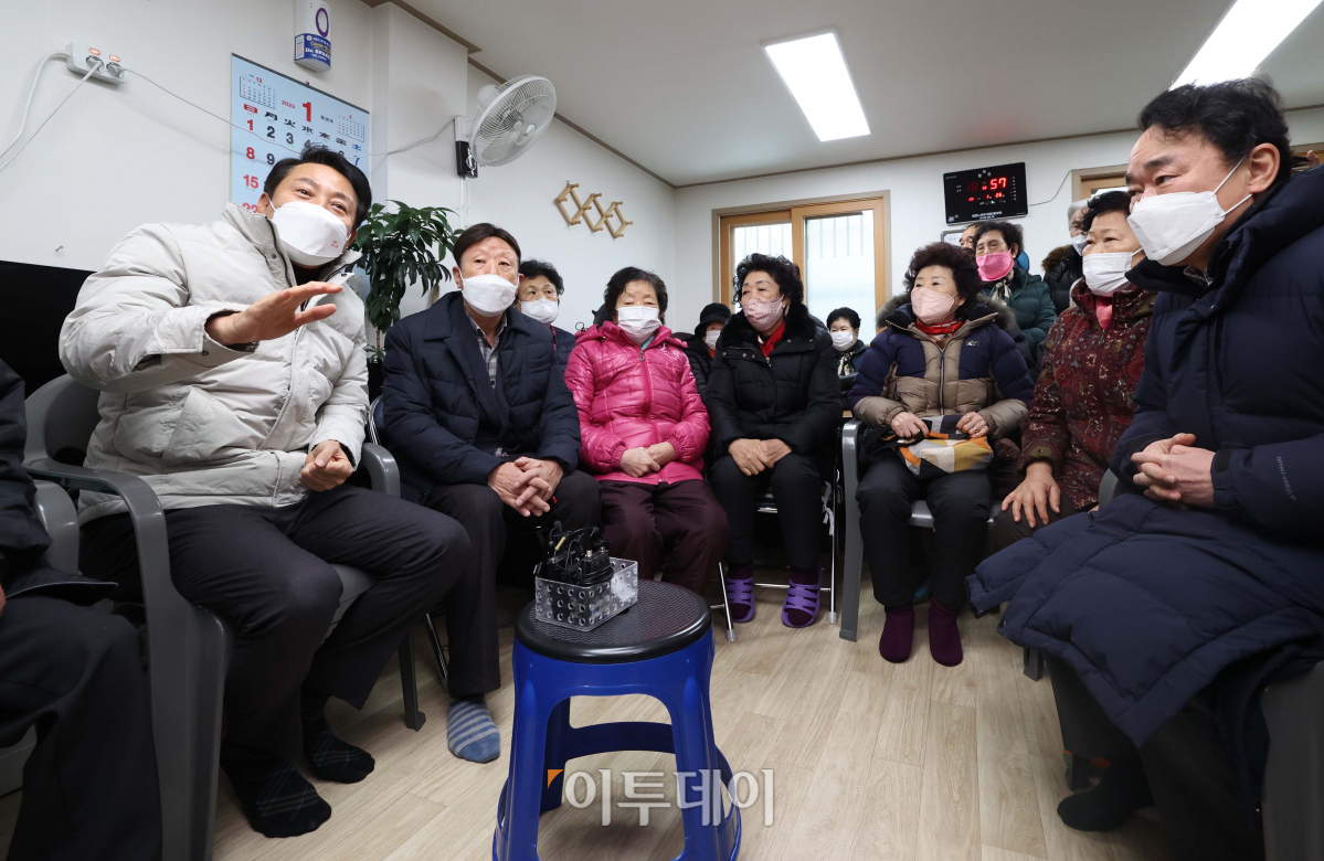 오세훈 서울시장이 취약계층 한파대책 점검을 위해 26일 서울 영등포구 구립 두암경로당을 찾아 어르신들과 대화하고 있다.
