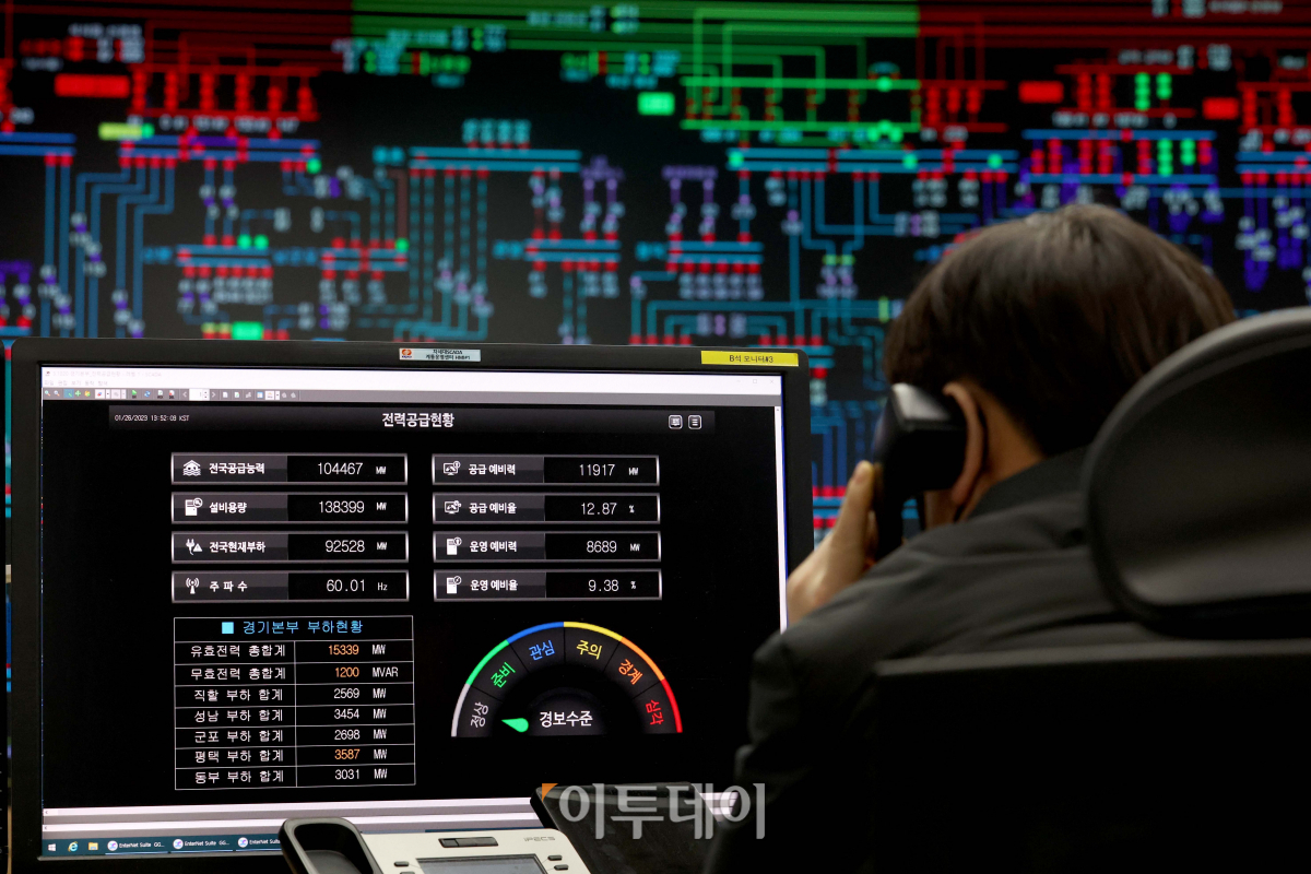 전국에 한파가 이어지며 난방수요가 급증하는 가운데 설 연휴가 끝나고 조업을 재개한 공장 등의 전력수요까지 늘며, 전력 수급이 고비를 맞을 거란 우려가 나오고 있다. 26일 경기 수원시 한국전력공사 경기지역본부 전력관리처 계통운영센터에서 관계자들이 전력수급현황을 점검하고 있다.