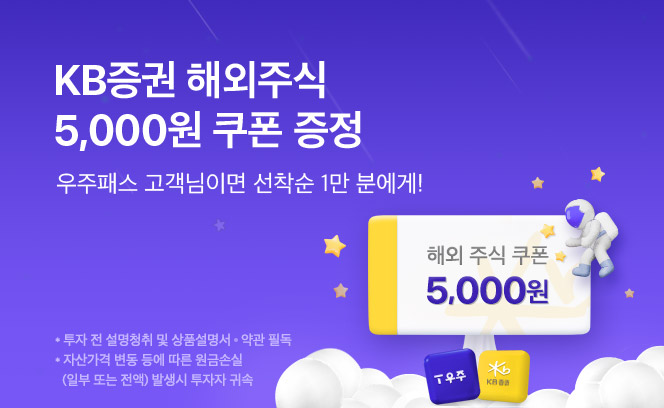 KB증권은 SK텔레콤과 제휴해 우주패스 개인고객 대상 '해외주식쿠폰 5000원권 증정' 이벤트를 실시한다고 1일 밝혔다.