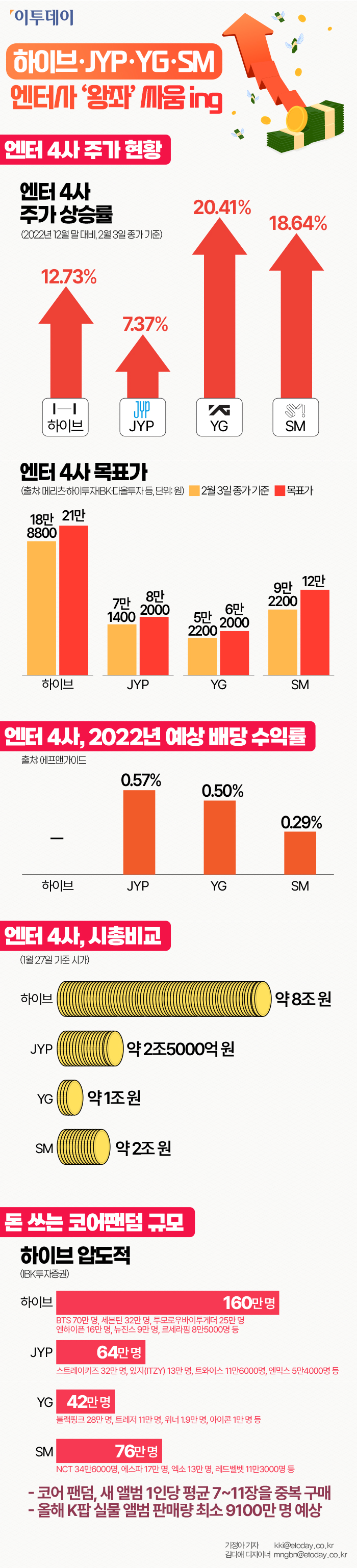 [인포그래픽] 하이브·JYP·YG·SM…엔터사 '왕좌' 싸움 ing