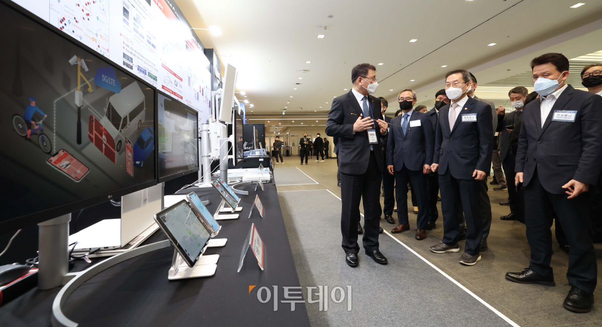 이종호 과학기술정보통신부 장관이 ‘K-네트워크 2030 전략’ 관련 현장 방문차 20일 서울 서초구 삼성전자 서울R&D캠퍼스를 찾아 차세대 네트워크 연구개발 성과를 LG전자 관계자에게 듣고 있다.