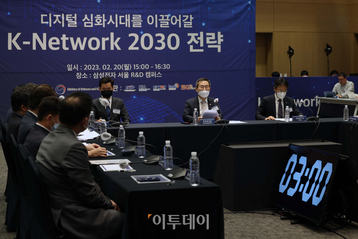 이종호 과학기술정보통신부 장관이 ‘K-네트워크 2030 전략’ 관련 현장 방문차 20일 서울 서초구 삼성전자 서울R&D캠퍼스를 찾아 인사말을 하고 있다.