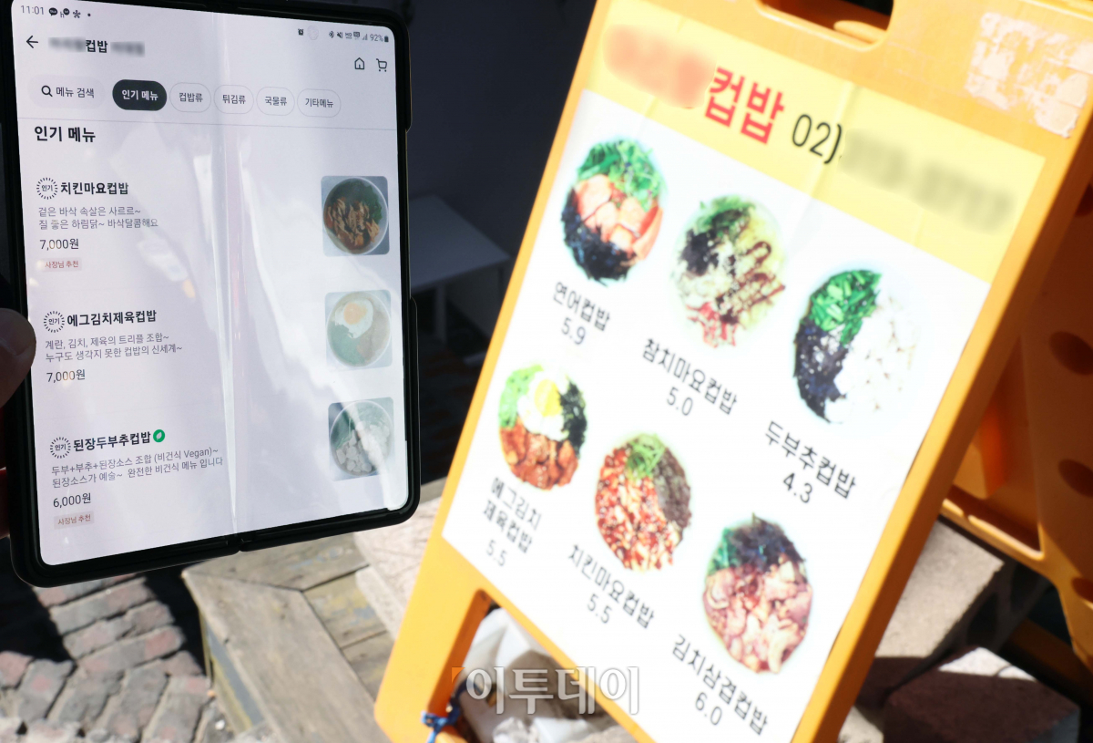 음식점 10곳 중 6곳 정도는 배달 가격이 매장 가격보다 10% 정도 비싼 것으로 조사됐다. 한국소비자원이 21일 서울 시내 34개 음식점의 총 1061개 메뉴에 대해 매장 가격과 배달앱 가격을 비교한 결과, 20개 음식점이 매장과 배달앱 내 가격을 다르게 책정했다. 매장보다 비싼 배달앱 메뉴(529개)의 평균 가격은 6702원으로, 매장 평균 가격(6081원)보다 10.2%(621원) 높았다. 이날 서울의 한 음식점의 매장 가격표와 배달앱 가격표가 다르게 표시돼 있다.
