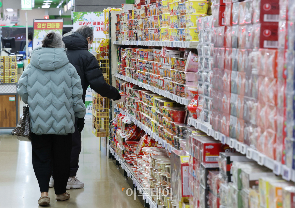 공공요금 인상 여파 등으로 소비자가 예상하는 향후 1년의 물가 상승률인 기대인플레이션율이 다시 4%대로 올라섰다. 한국은행이 21일 발표한 '2월 소비자동향조사' 결과에 따르면 기대인플레이션율은 4.0%로 1월 3.9%보다 0.1%p 올랐다. 이는 2개월 연속 상승세로 기대인플레이션이 좀처럼 꺾이지 않으면서 5% 안팎의 고물가 흐름이 예상보다 오래 이어질 수 있다는 우려도 커지고 있다. 이날 서울의 한 대형마트에서 시민들이 장을 보고 있다.