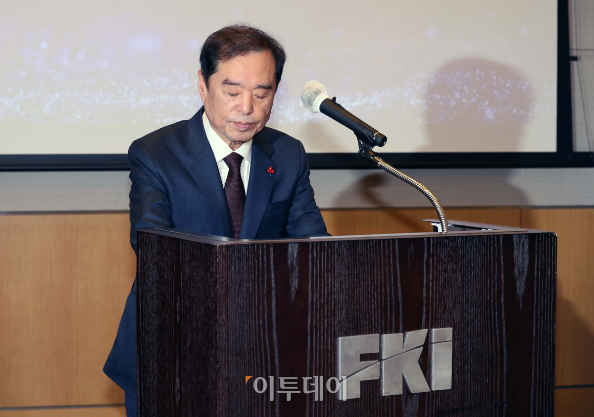 김병준 전국경제인연합회 미래발전위원장 겸 회장 직무대행이 23일 서울 여의도 전경련회관 컨퍼런스센터에서 열린 ‘전경련 제62회 정기총회’에서 회장 직무대행 수락인사를 하고 있다.