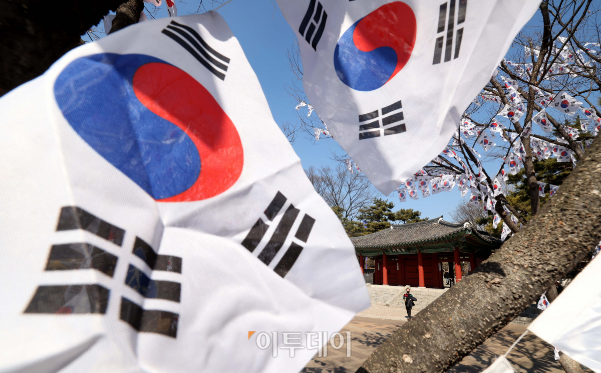 제104주년 삼일절을 이틀 앞둔 27일 서울 용산구 효창공원 앞에 태극기 거리가 조성돼 있다. 용산구는 삼일절을 기념하고 애국선열의 독립운동 정신을 기리기 위해 지하철 6호선 효창공원앞역~효창공원 구간 가로등과 가로수에 태극기를 게양해 태극기 거리를 연출했다. 태극기 거리는 내달 5일까지 이어진다.