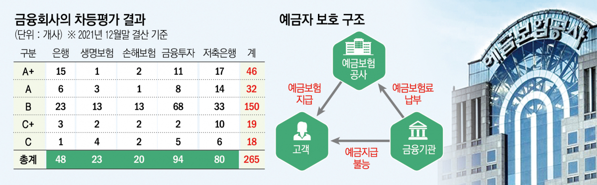 금융권에서는 차등보험료율제도 정교화가 시급하다는 얘기가 나온다. 금융권 관계자는 “소비자는 통상 금융사의 자산과 브랜드를 믿고 돈을 맡기는데, 자산 규모가 작은 회사가 오히려 A등급이고 대형사는 B등급으로 더 많은 예보료를 내고 있다”고 토로했다. 이어 “의아하지만 타사의 등급 부여 배경은 알 수 없어 비교할 수도 없는 상황”이라고 했다.