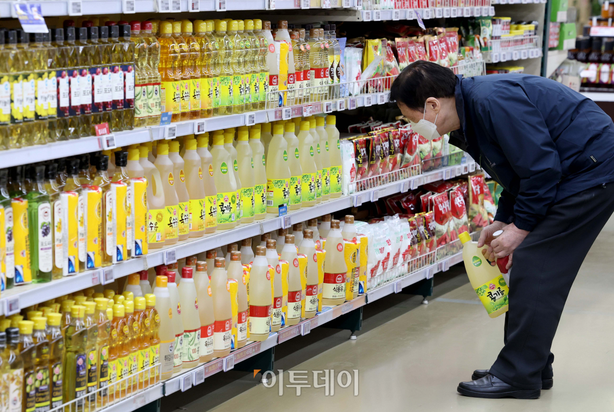 27일 통계청 국가통계포털에 따르면 지난달 가공식품 물가 상승률은 10.4%를 기록했다. 이는 글로벌 금융위기 때인 지난 2009년 4월(11.1%) 이후 13년 10개월 만의 최고치다. 품목별로는 치즈 34.9%, 식용유 28.9%, 밀가루 22.3%, 빵 17.7%, 커피 15.6%, 스낵 과자 14.2%, 아이스크림 13.6% 등이다. 지난달 외식물가지수 역시 115.45로 전년 동월 대비 7.5% 올라 물가안정에 먹구름이 낄 것으로 보인다. 이날 서울의 한 대형마트에서 시민들이 장을 보고 있다.