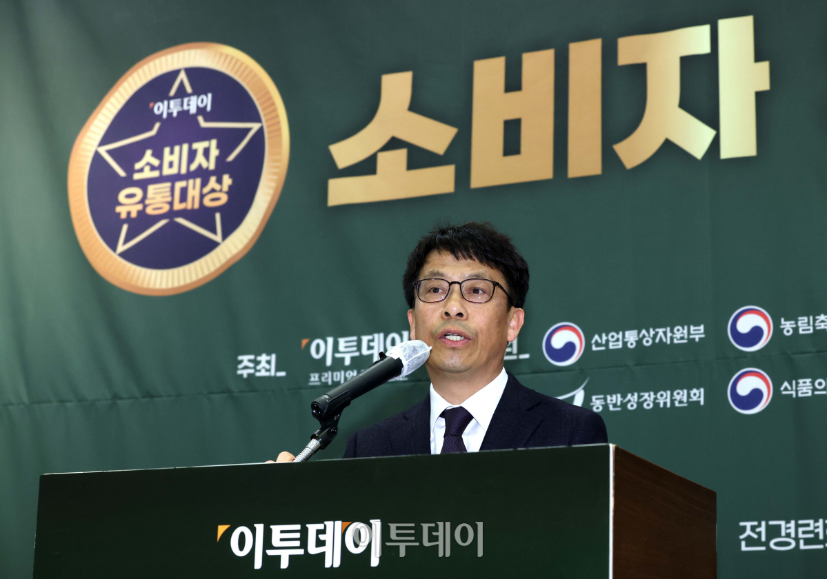황수성 산업통상자원부 산업기반실 실장이 29일 서울 여의도 전경련회관 컨퍼런스센터에서 열린 ‘이투데이 소비자 유통대상’ 시상식에서 축사를 하고 있다. 이투데이 소비자 유통대상은 진화하는 유통산업을 이끄는 리더를 발굴하고 시상함으로써 유통산업의 발전적인 모델을 공유하고 널리 전파하는 자리다.