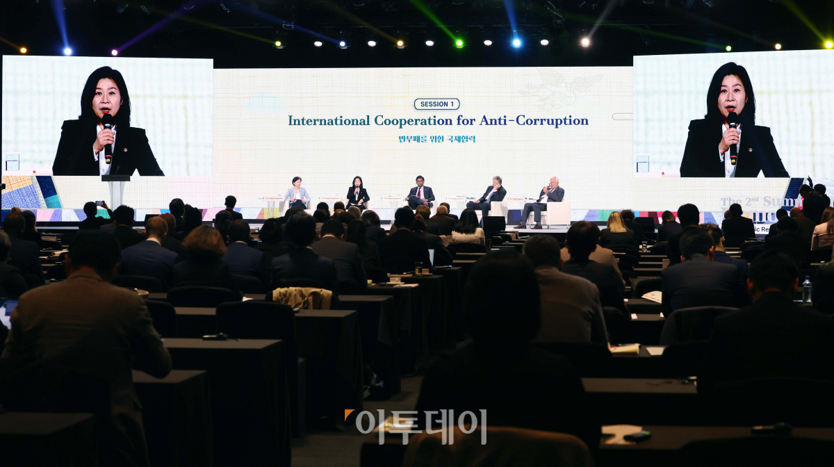 이노공 법무부 차관이 30일 오전 서울 중구 신라호텔에서 열린 '제2차 민주주의 정상회의 인태지역 회의'에서 반부패를 위한 국제협력을 주제로 기조연설을 하고 있다.