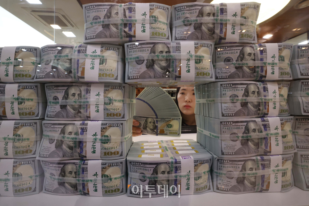 최근 미국 달러 약세 등의 영향으로 지난달 외환보유액이 8억 달러 가까이 늘었다. 한은이 5일 발표한 외환보유액 통계에 따르면 3월 말 기준 외환보유액은 4260억7000만달러(약 560조2820억원)로, 2월 말(4252억9000달러)보다 7억8000만달러 증가했다. 한은 관계자는 "유로 등 기타통화 외화자산의 미국 달러 환산액이 증가한 데 따른 것"이라고 설명했다. 지난달 미국 달러화가 약 2.4%(미국 달러화 지수 기준) 평가 절하되면서 그만큼 미국 달러로 환산한 기타 통화 외화자산이 늘었다는 의미다. 이날 서울 중구 하나은행 위변조대응센터에서 관계자가 달러화를 정리하고 있다.