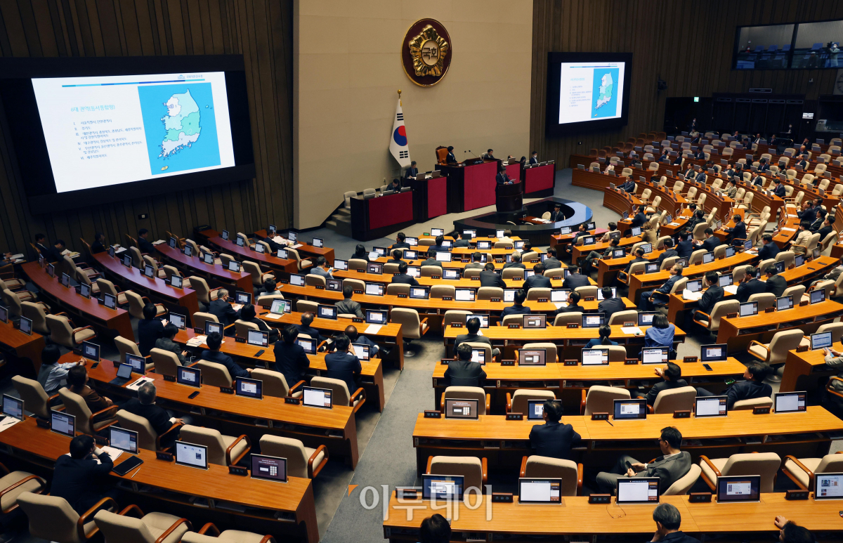 10일 서울 여의도 국회 본회의장에서 제405회국회(임시회) 제1차 국회의원 선거제도 개선에 관한 결의안 심사를 위한 전원위원회가 열리고 있다.