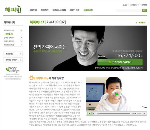 온라인 기부 포털 ‘해피빈’을 통해 진행되는 이번 ‘해피에너지’ 캠페인은 연예인, 아나운서 등 유명 인사가 해피에너지 기부자로 참여해 온라인 기부 문화 확산에 긍정적인 역할을 할 것으로 기대된다.
