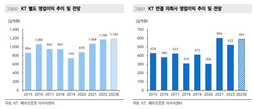 정 연구원은 “연결 자회사 중 올해 성장이 기대되는 기업은 KT에스테이트로, 하반기 광진구 복합단지 개발 사업의 분양 매출을 계기로 큰 폭의 외형 성장이 나타날 전망”이라고 했다.