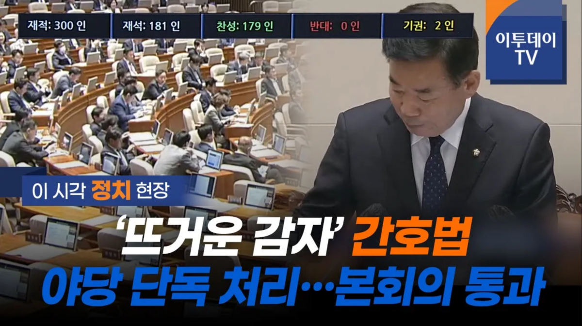 27일 오후 국회에서 열린 본회의에서 간호법 제정안은 재석 181표, 찬성 179표, 기권 2표로 통과됐습니다. 법안 처리를 반대해 온 국민의힘 의원들이 표결 전 전원 퇴장하면서 야권 단독으로 처리됐습니다.