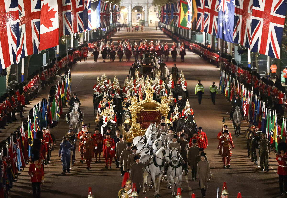 영국 런던에서 3일 찰스 3세 국왕 대관식 리허설이 진행되고 있다. 6일 대관식에는 에마뉘엘 마크롱 프랑스 대통령 등 국가 정상 약 100명을 포함해 203개국 대표단, 총 2200여 명이 참석할 예정이다. 우리나라에서는 한덕수 총리가 정부 대표로 참석하며 러시아와 이란은 초청받지 않았다. 조 바이든 미국 대통령은 이미 불참 계획을 밝혔고 부인 질 바이든 여사가 대행한다. 런던/로이터연합뉴스