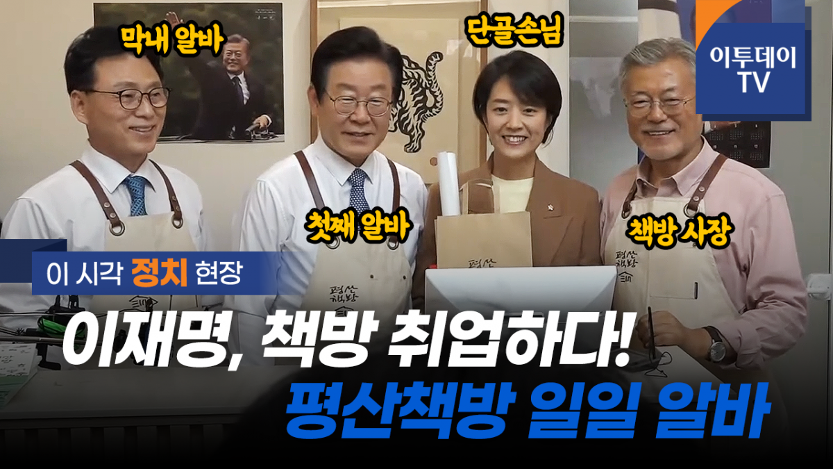 이 대표와 박 원내대표는 평산책방 로고가 그려진 앞치마를 앞에 두르고 책방을 찾은 손님들을 직접 응대하며 기념사진 촬영도 함께 했습니다.