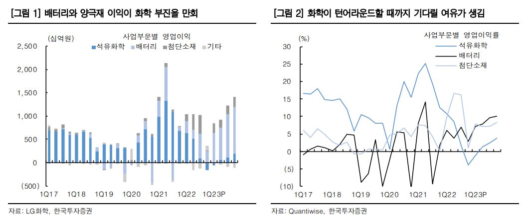 최 연구원은 “LG화학은 고부가 제품으로 차별화돼 있는 만큼 2분기 흑자전환 할 전망”이라며 “양극재 부문이 메탈 가격 하락에 따라 일시적으로 영업이익이 감소하는 부분을 이번에는 화학에서 만회하며 안정적인 현금 창출 능력을 보여줄 것”이라고 했다.
