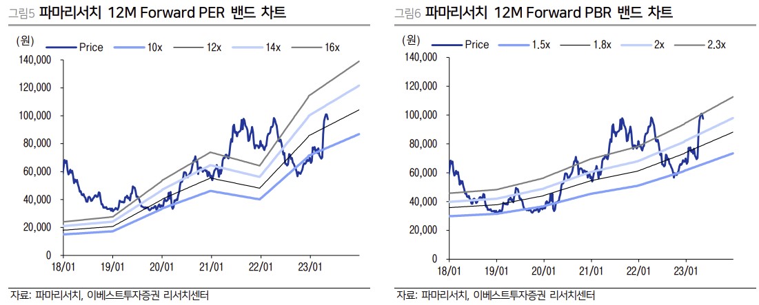 이베스트투자증권은 18일 파마리서치에 대해 1분기 실적을 통해 주요 투자포인트인 리쥬란 의료기기와 코스메틱 매출의 고성장을 확인했고, 향후에도 투자자들의 관심은 리쥬란 수출증가율과 코스메틱 매출증가율의 지속기간에 집중될 것으로 예상한다며 투자의견 매수를 유지하고 목표주가를 기존 11만 원에서 14만 원으로 27.27% 상향 조정했다. 전 거래일 기준 현재 주가는 11만8700원이다.