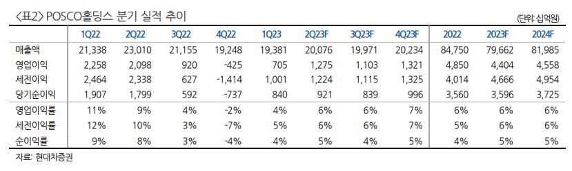 8일 박현욱 현대차증권 연구원은 “하반기 글로벌 철강 시황이 완만하지만 개선될 것으로 예상한다”며 “2030년까지 리튬 생산능력 30만 톤을 목표로 하고 있어 중기적으로 리튬 가치가 추가적으로 반영될 여지가 충분하다”고 했다.