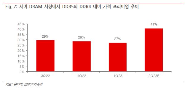 그는 “SK하이닉스의 DDR5 비중은 서버 매출 중 1분기 말 20% 중반에서 2분기 40%, 하반기 50% 이상으로 시장 선점을 통한 수혜가 예상된다”며 “HBM은 아직 SK하이닉스 DRAM 매출액의 10% 비중 정도지만, 인공지능(AI) 서버 고성장으로 향후 2~3년 내 20% 이상 수준으로 빠른 성장을 보일 전망”이라고 했다.