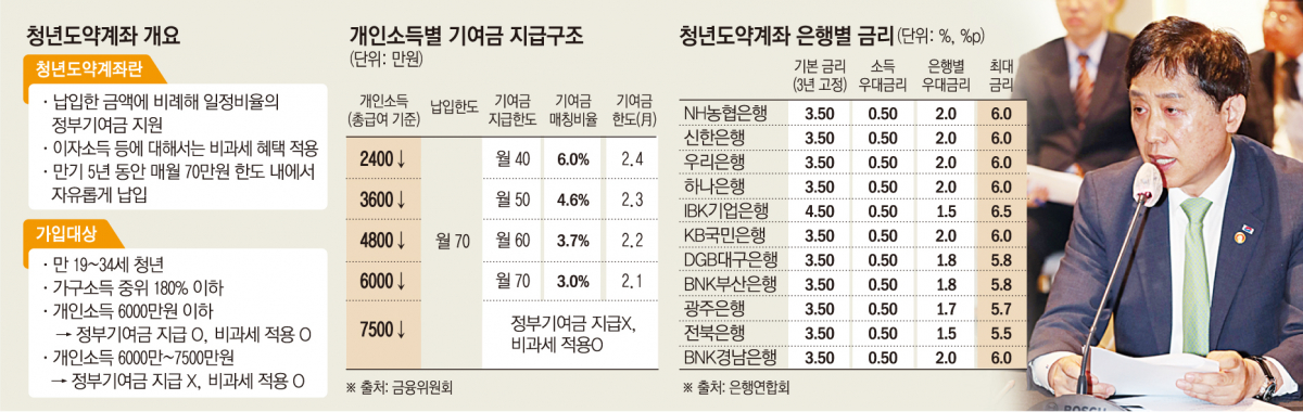 이어 “은행권은 이익을 우선시하기보다 미래 고객 확보, 청년 세대 지원의 측면에서 (금리 수준을) 조금 더 검토하면 좋겠다”며 “많은 청년이 열심히 하면 5년간 5000만 원 목돈을 모을 수 있는 결과가 나오기를 희망한다”고 덧붙였다.