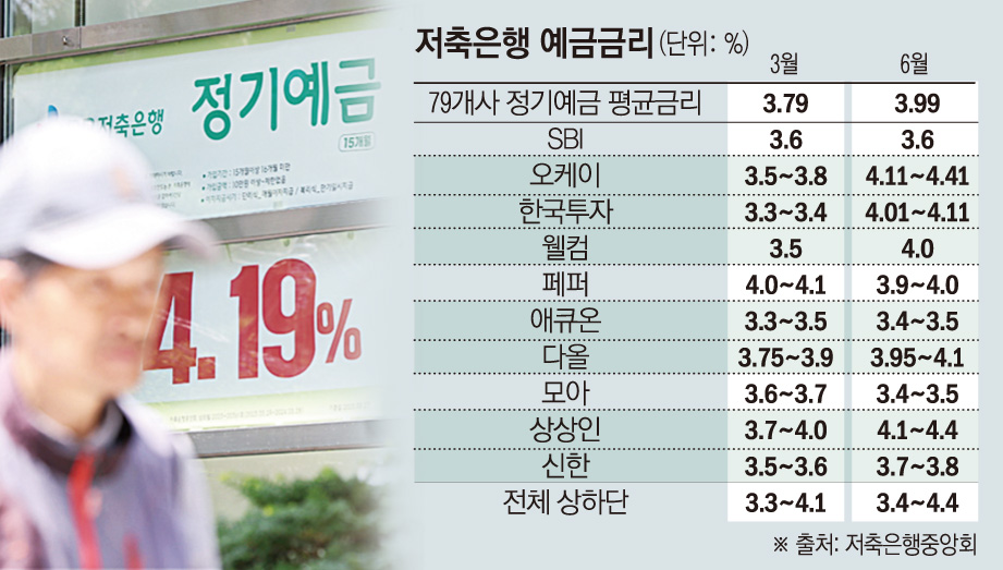 저축은행들이 속속 연 4%대 금리 예금 상품을 내놓고 있다. 시중은행 예금금리가 높아지면서 자금이탈 방지에 나서기 위한 것으로 풀이된다. 다만, 1분기 저조한 실적으로 수익성 관리가 필요한 시점이라 지난해 말처럼 예금 금리가 연 6%대까지 고공행진하지는 않을 것이라는 전망이 나온다.