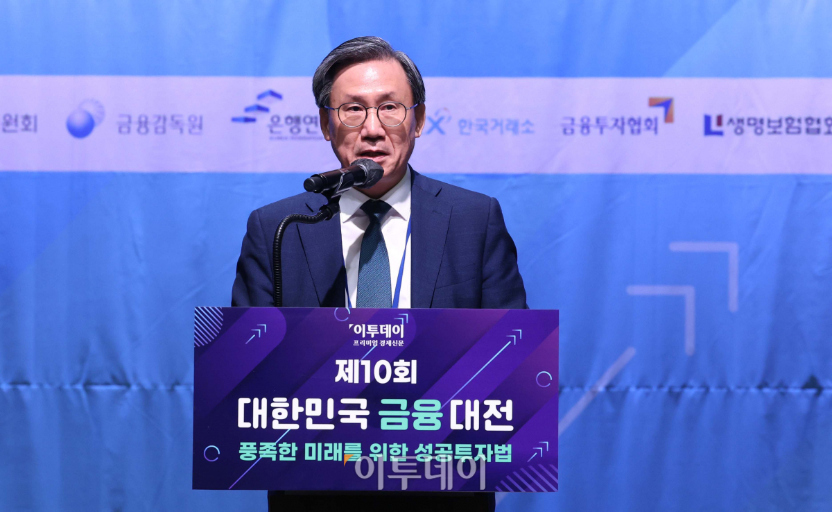 김덕헌 이투데이 대표이사가 13일 서울 중구 대한상공회의소에서 열린 ‘제10회 대한민국 금융대전’에서 환영사를 하고 있다. 이투데이가 ‘풍족한 미래를 위한 성공투자법’을 주제로 개최한 대한민국 금융대전은 재테크에 관심있는 일반인들을 대상으로 금융 지식과 전략적인 투자 방법을 제공하여 개인의 재무 관리 역량을 향상시키고, 미래를 더욱 안정적으로 대비할 수 있는 기회를 제공하는 자리다.