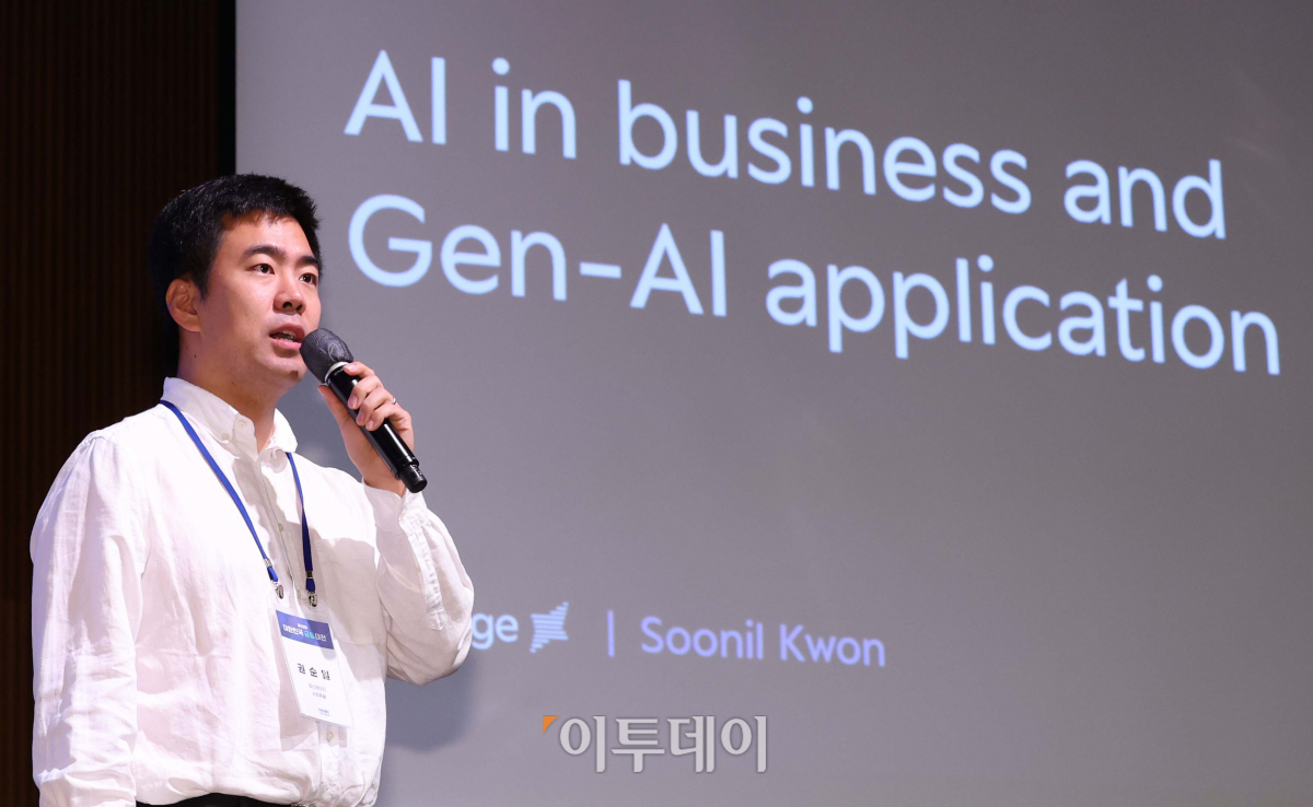 권순일 업스테이지 사업총괄이 13일 서울 중구 대한상공회의소에서 열린 ‘제10회 대한민국 금융대전’에서 ‘챗GPT와 금융의 미래’를 주제로 발표하고 있다. 이투데이가 ‘풍족한 미래를 위한 성공투자법’을 주제로 개최한 대한민국 금융대전은 재테크에 관심있는 일반인들을 대상으로 금융 지식과 전략적인 투자 방법을 제공하여 개인의 재무 관리 역량을 향상시키고, 미래를 더욱 안정적으로 대비할 수 있는 기회를 제공하는 자리다.