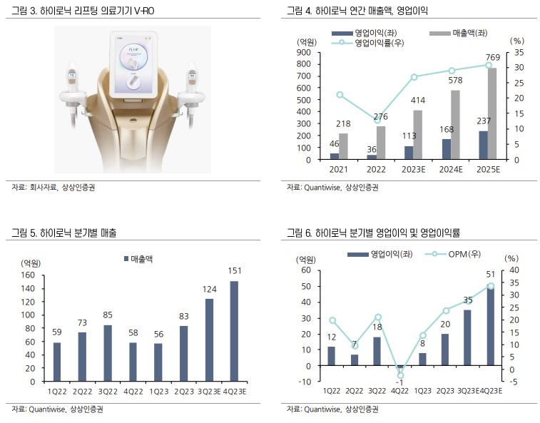 이소중 상상인증권 연구원은 "하이로닉은 피부 미용의료기기 전문업체이며 주요 제품은 V-RO(고주파, 접속초음파)와 PICOHI(레이저)다. 2분기 잠정 매출액은 83억 원, 영업이익은 20억 원을 기록했다"고 분석했다.