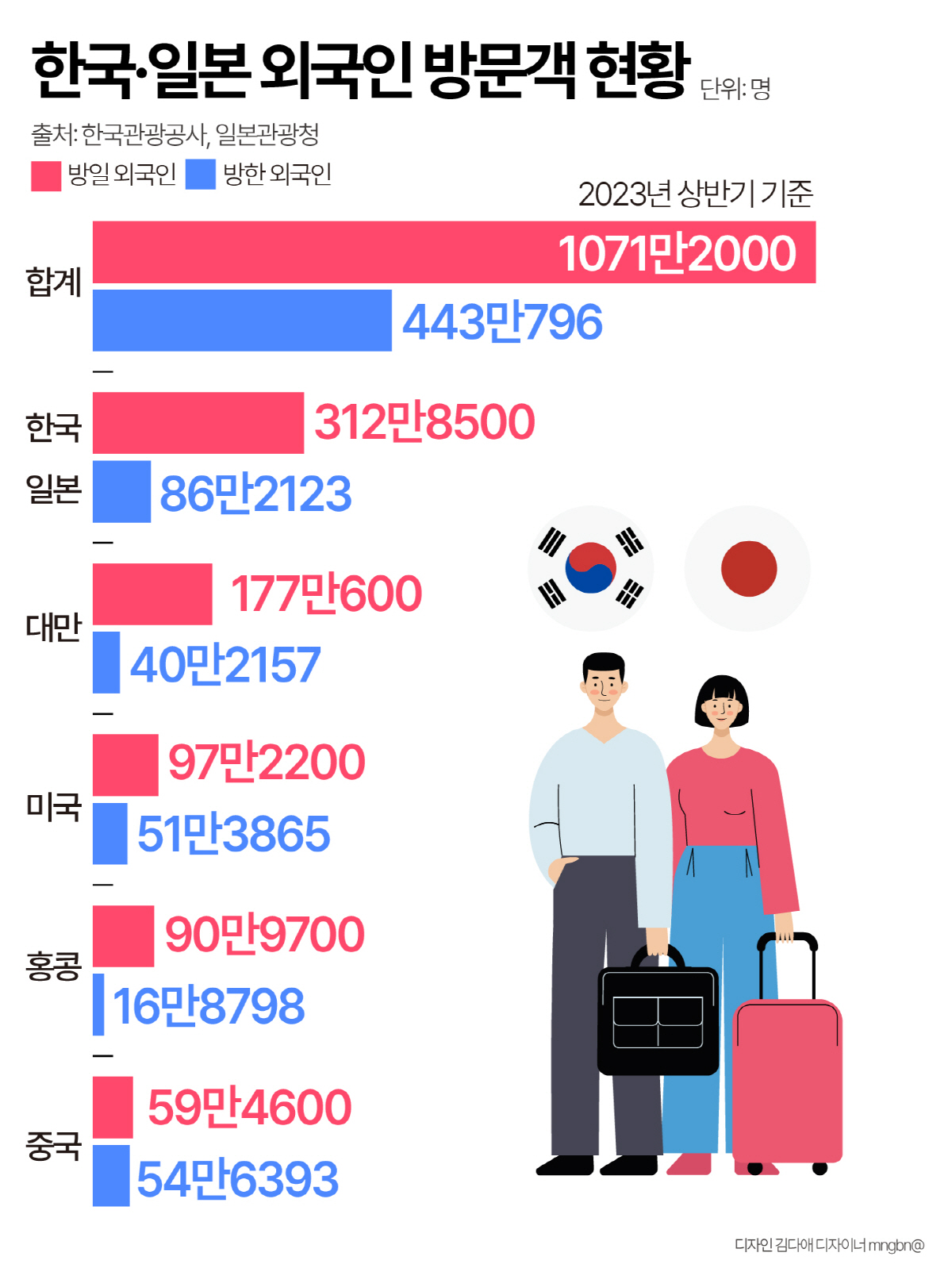 올해 상반기 일본을 찾은 외국인은 1071만2000명으로 한국을 찾은 외국인 443만796 명의 2.4배다.
