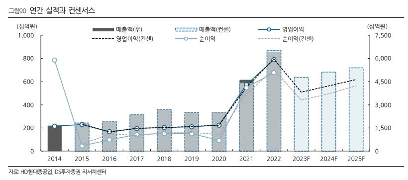 양 연구원은 “HD현대중공업은 상선, 특수선, 해양플랜트, 엔진기계의 전 분야를 제작하는 조선소”라며 “현재 HD한국조선해양 자회사인 현대삼호중공업 도크가 많이 찼기에 향후 HD현대중공업으로 수주가 몰릴 수 있다”고 했다.