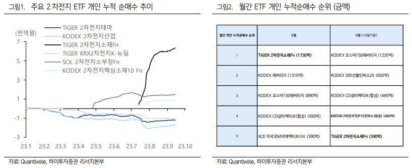 이차전지 인버스 ETF가 상장되면서 상반기와 같이 이차전지 수급 쏠림에 따른 주가 급등이 재현되기에도 무리가 있다는 전망이 나왔다.