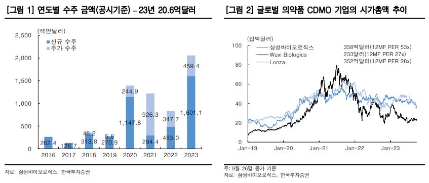 그는 “삼성바이오로직스 업황과 전망은 여전히 견고하고 수주 경쟁력은 강화되고 있다”며 “올해 위탁생산(CMO) 총수주 금액은 20억6000만 달러로 전년 대비 248% 성장했으며, 이 중 신규 수주는 78%에 달한다”고 했다.